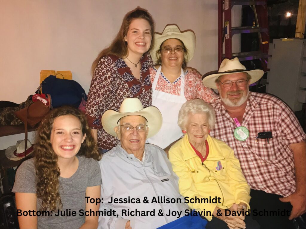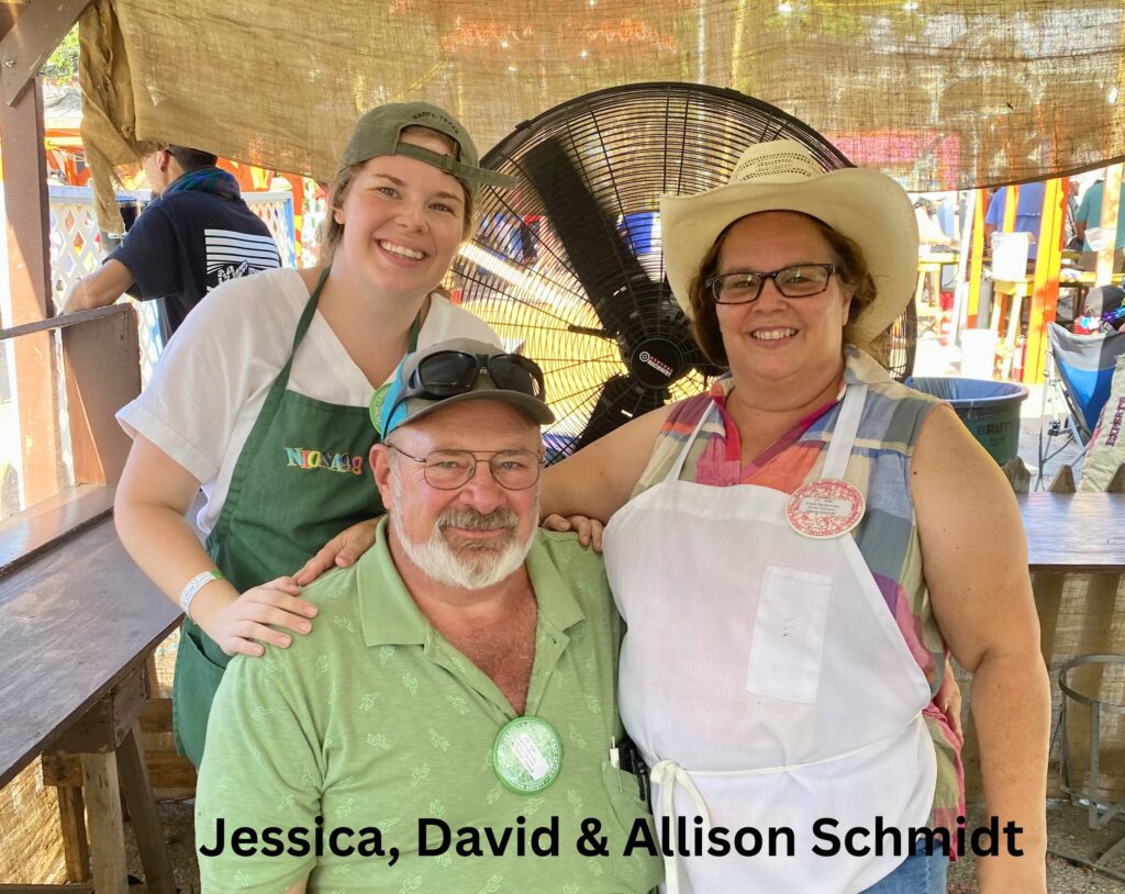 That legacy continued into the early 2000s, when Allison and David “Smitty” Schmidt stepped into leadership as booth chairmen, carrying forward the same dedication and spirit. In 2022 their daughter Jessica Schmidt took on an even greater role as booth co-chair, while also serving as co–vice chairman of Frontier Town.